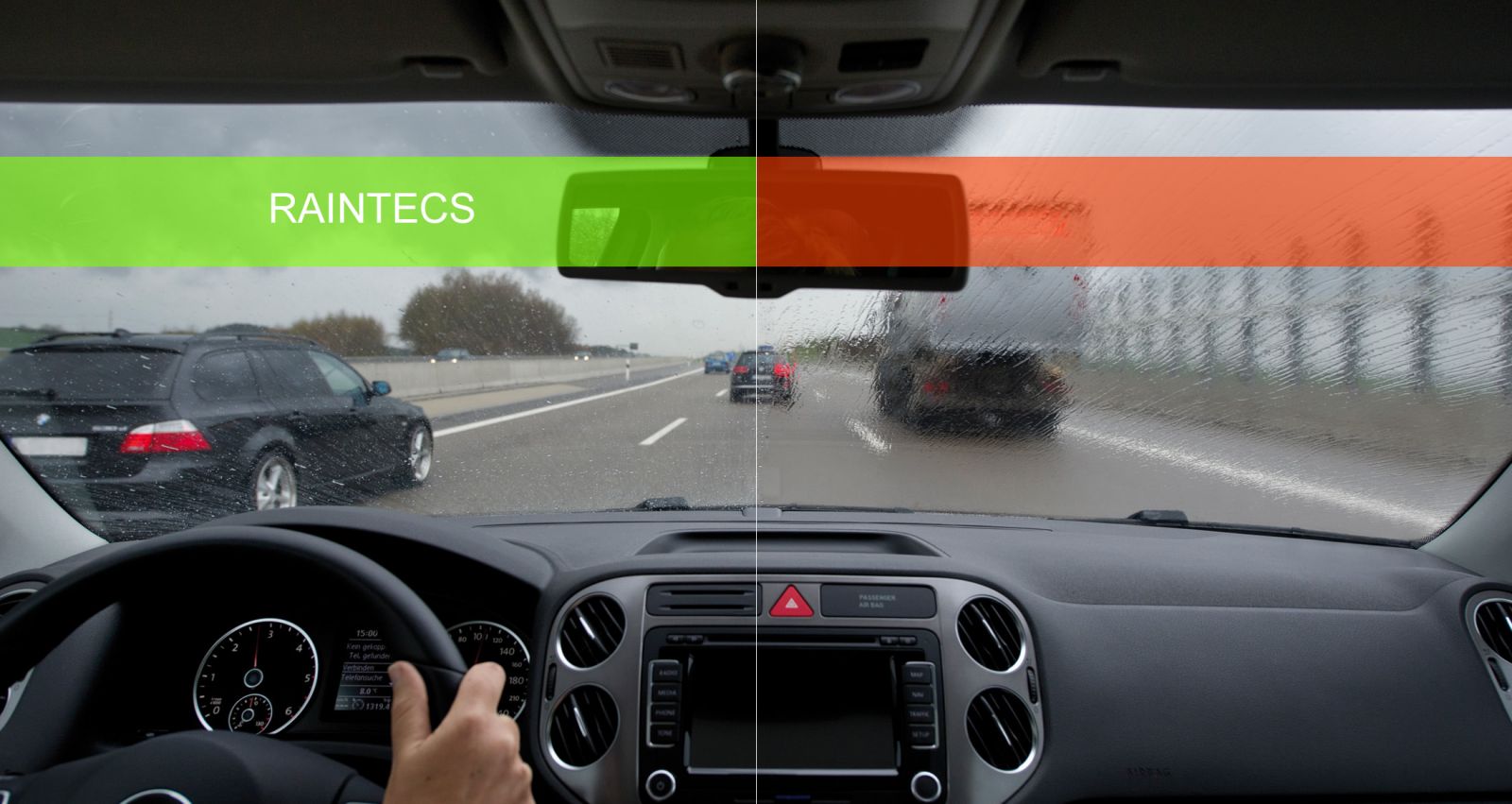 RainTecs’in uygulandığı yüzeylerin su tutma özelliği azaldığı için yağmurlu havalarda cama temas eden su damlacıkları sileceğe bile gerek kalmadan kayarak uzaklaşıyor. Bu da yolu görüş kabiliyetinizi artırıyor.